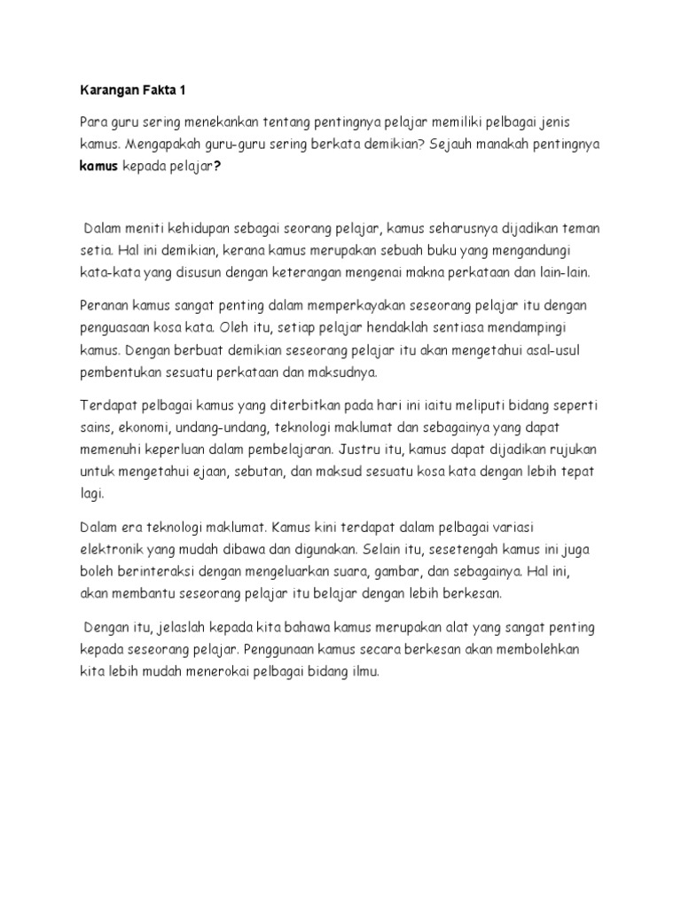 Contoh karangan jenis fakta 1 1. Resepi Kari Ayam Makan Dengan Roti Jala. Malah kerajaan menggalakkan rakyatnya sentiasa melibatkan diri dengan aktiviti sukanHal ini kerana melalui bersukan banyak faedah yang kita peroleh.